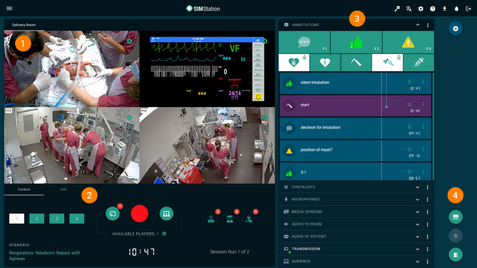 Here you can transmit the scenario’s Clinical Vignette or live-entered information for the audience at the transmission room. - Simulation Participants