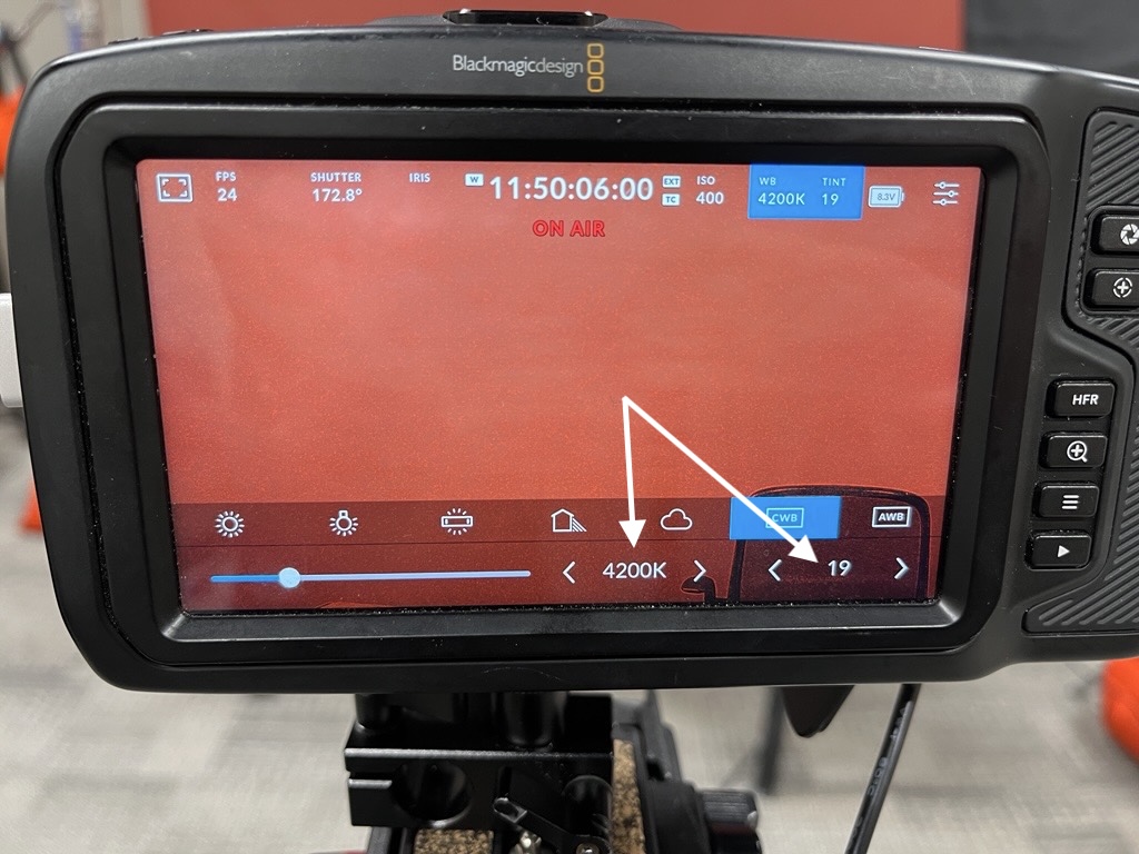 - Run a test recording and make any adjustments as needed. Generally I've set the WB to 4200K and Tint to 19.